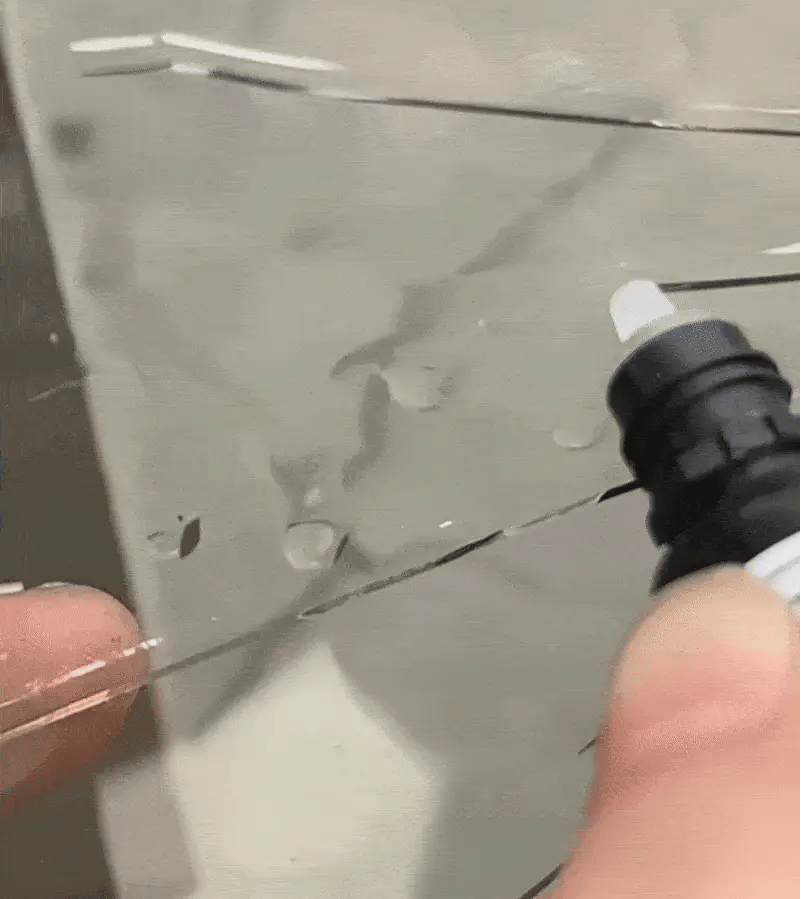 - Aplică soluția FixGlass™ direct pe fisură